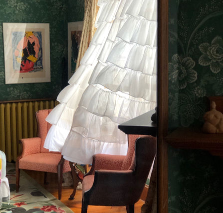 Located on the second floor, the Garden Deluxe King Suite offers a quiet retreat with large windows overlooking the garden. Triple‑lined silk curtains provide excellent shade, while the suite’s tucked‑away location and added soundproofing ensure a peaceful stay. Vintage furnishings and Queen Anne–style design create an elegant, traditional atmosphere. Spacious and filled with natural light, the suite also offers an optional twin bed for a third guest. Enjoy a classic clawfoot tub with shower, air conditioning, fast Wi‑Fi, a Smart TV, and streaming options including Roku, Netflix, and Sling.